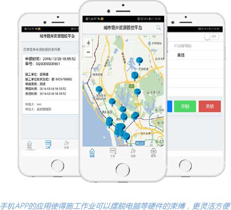 城市管井資源管控系統(tǒng)是利用多項(xiàng)自主核心專利技術(shù),實(shí)現(xiàn)科學(xué)的井管資源實(shí)時(shí)監(jiān)管監(jiān)控的完整系統(tǒng),其主要由防水智能電子鎖/手機(jī)APP平臺(tái)/城 市管井資源管控平臺(tái)/應(yīng)急開鎖器