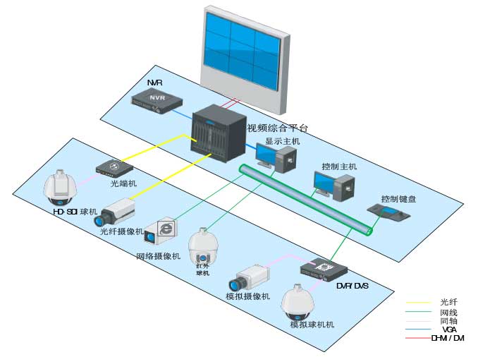以高清視頻綜合平臺(tái)為核心控制單元,可輕松實(shí)現(xiàn)多種信號(hào)接入并輸出至LCD或DLP大屏幕進(jìn)行高清顯示