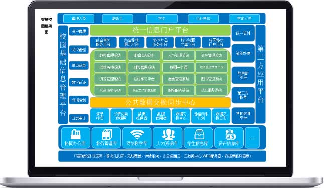 通過此平臺提供教師基礎信息管理、學生基礎信息管理、用戶認證管理、門戶管理、資源管理、應用管理、第三方應用接入等基礎功能與服務。